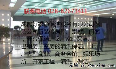 成都好家净保洁服务有限公司 承接服务项目如下: 1、工程开荒保洁。别墅、办公楼、营业场所等开荒清洁; 2、外檐玻璃幕清洗,广告牌清洗,铝塑板清洗等; 3、大型地面清洗、石材翻新、结晶养护; 4、室内空气治理,除甲醛。 5、家居保洁。包括家居装修后开荒保洁,家庭日常保洁,擦玻璃,包月年卡保洁等; 6、消毒保洁。租房前后整体保洁清洗消毒;厨房保养,厨房全面清洁、除污、除油、蒸汽无缝杀菌、橱柜及瓷砖面抑菌处理;卫生间清洗、保养:洁具、瓷砖除污垢、水纹、蒸汽无缝杀菌;卫浴设施全面清洁、消毒、抑菌处理; 7、地毯清洗。各种材质的办公地毯、家庭块毯、挂毯的清洗、除螨; 8、沙发、座椅清洗。布艺沙发、座椅的清洗消毒、除螨,真皮沙发、座椅的清洁、打蜡养护; 9、地板保养。木质地板清洁、除尘、打蜡、抛光。石质地板日常保养、打蜡、抛光。玻化砖、抛光砖、晶面砖除污、清除渗透养护。环氧树脂地板清洁打蜡。; 10、单位食堂油烟机、灶台清洗; 11、公司、企业办公场所定期保洁,突击性保洁;